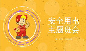 卡通电工背景的安全用电主题班会PPT模板