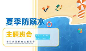 卡通沙滩背景的《夏季防溺水》PPT下载