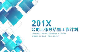 创意蓝色矩形叠加背景的工作总结PPT模板
