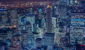 蓝色发达城市夜景PPT背景图片