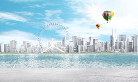 城市摩天轮热气球PPT背景图片