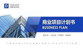 蓝色写字楼背景的商业计划书PPT模板