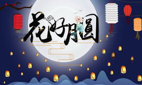 月亮灯笼背景的花好月圆PPT模板