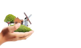 手捧风车小屋的PPT背景图片