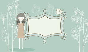 绿色可爱卡通女孩PPT背景图片