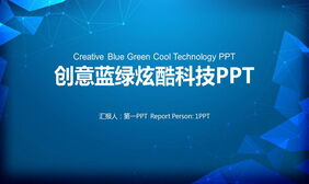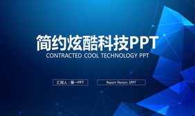 蓝色点线与多边形背景的科技行业工作汇报PPT模板