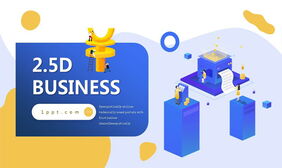 蓝黄2.5D扁平化欧美风商务PPT模板免费下载