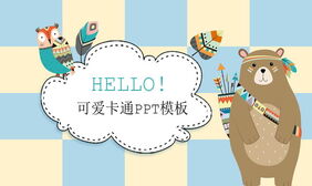 卡通猫头鹰大狗熊背景PPT模板