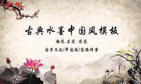 水墨梅花荷花兰花背景古典中国风PPT模板