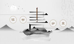 水墨群山背景的读书分享会PPT模板