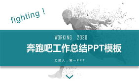 奔跑人物剪影背景工作总结PPT模板