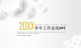 简洁多边形背景年中工作总结PPT模板