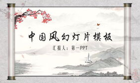 动态卷轴水墨梅花山水背景中国风PPT模板