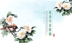 国画背景的花香鸟语PPT模板