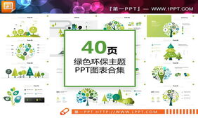 40页扁平化绿色环境保护主题PPT图表大全
