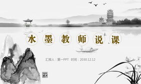 水墨亭台楼阁背景的语文教师说课PPT模板