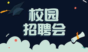 深蓝色卡通风校园招聘会PPT模板