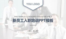 白领图片背景的新员工入职培训PPT课件模板