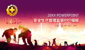 工地施工剪影背景的安全生产管理监督PPT模板
