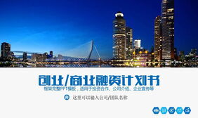 蓝色城市夜景背景的创业融资计划书PPT模板