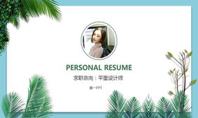 蓝色植物叶子背景的个人简历PPT模板