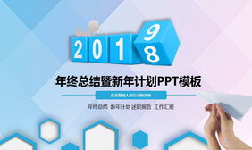 蓝色抽象曲线背景的工作总结计划PPT模板