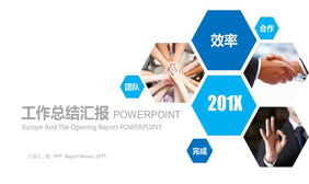 蓝色六边形与图片混排的工作总结汇报PPT模板