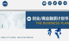 蓝色立体小人背景的商业融资计划书PPT模板