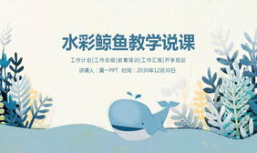 蓝色水彩鲸鱼背景的教学说课PPT课件模板
