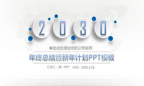 蓝色世界地图点阵图背景工作总结PPT模板