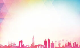 七彩城市建筑剪影PPT背景图片