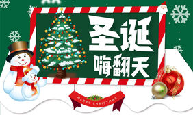 圣诞树雪人背景的圣诞嗨翻天PPT模板