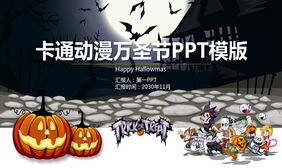 彩色卡通吸血鬼魔术师背景的万圣节PPT模板