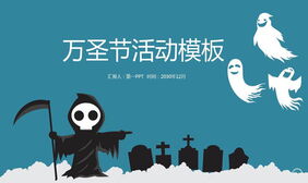 城堡蝙蝠鬼魂背景万圣节主题PPT模板