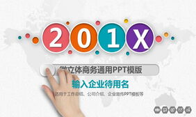 彩色微立体六边形背景的述职报告PPT模板免费下载