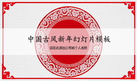 红色古风图案背景的新年PPT模板