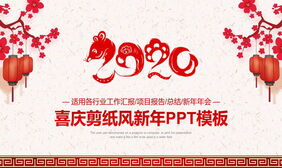 精美剪纸风2020鼠年新年PPT模板