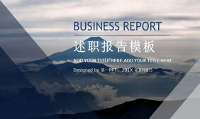 蓝灰山峰背景的工作汇报PPT模板