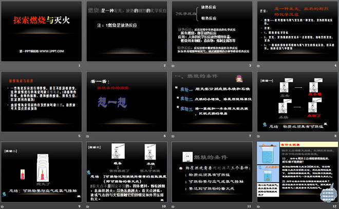关键词:燃烧的学问教学课件,探究燃烧与灭火教学课件,北京课改版九年级上册化学PPT课件下载,九年级化学幻灯片课件下载,燃烧的学问PPT课件下载,探究燃烧与灭火PPT课件下载,.PPT格式;