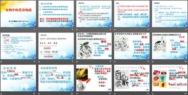 2、理解各种营养物质的来源及其对人体的作用。