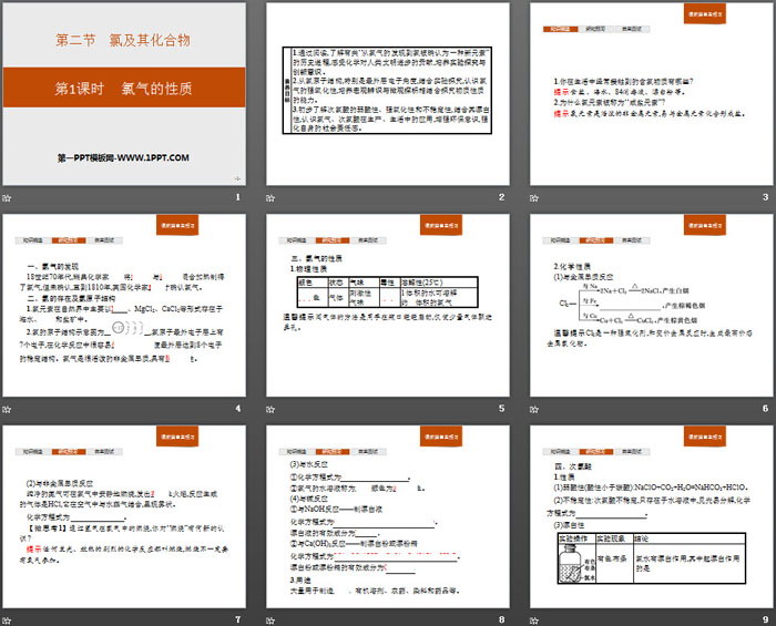 关键词:人教版高中化学必修一PPT课件免费下载,氯气的性质PPT下载,氯及其化合物PPT下载,.PPT格式;