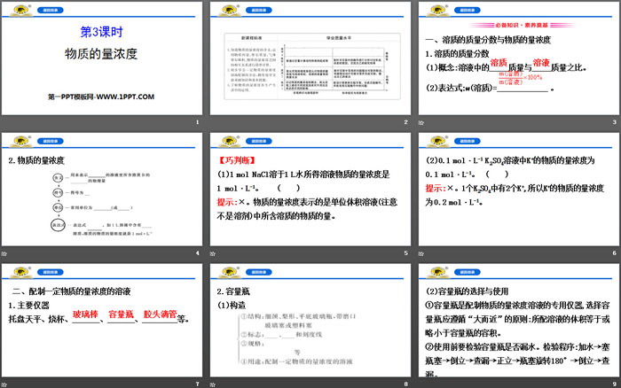 关键词:人教版高中化学必修一PPT课件免费下载,物质的量浓度PPT下载,物质的量PPT下载,.PPT格式;