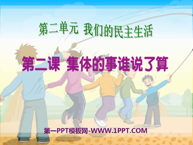 关键词:我们的民主生活教学课件,集体的事谁说了算教学课件,人教版五年级上册品德与社会PPT课件下载,五年级品德与社会幻灯片课件下载,我们的民主生活PPT课件下载,集体的事谁说了算PPT课件下载,.PPT格式;