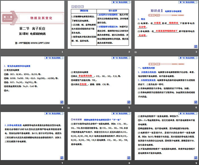 离子反应PPT,第二部分内容:知识点1 电解质与非电解质