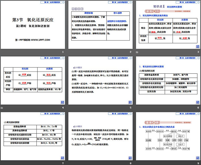 1.知道常见的氧化剂和还原剂。了解氧化还原反应的基本规律。