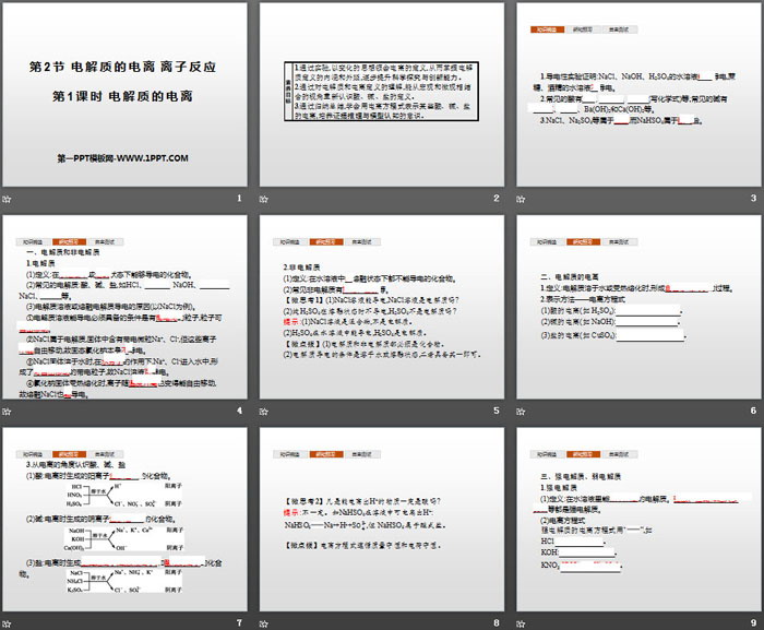 关键词:鲁科版高中化学必修一PPT课件免费下载,电解质的电离离子反应PPT下载,元素与物质世界PPT下载,电解质的电离PPT下载,.PPT格式;