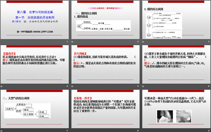 关键词:人教版高中化学必修二PPT课件免费下载,自然资源的开发利用PPT下载,化学与可持续发展PPT下载,煤石油和天然气的综合利用PPT下载,.PPT格式;