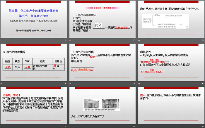 关键词:人教版高中化学必修二PPT课件免费下载,氮及其化合物PPT下载,化工生产中的重要非金属元素PPT下载,氮气与氮的固定一氧化氮和二氧化氮PPT下载,.PPT格式;