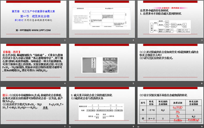 关键词:人教版高中化学必修二PPT课件免费下载,硫及其化合物PPT下载,化工生产中的重要非金属元素PPT下载,不同价态含硫物质的转化PPT下载,.PPT格式;