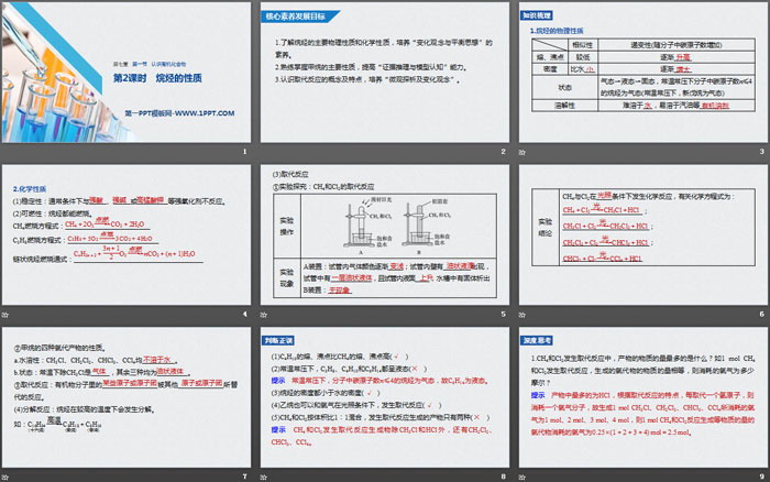 1.了解烷烃的主要物理性质和化学性质,培养“变化观念与平衡思想”的素养。